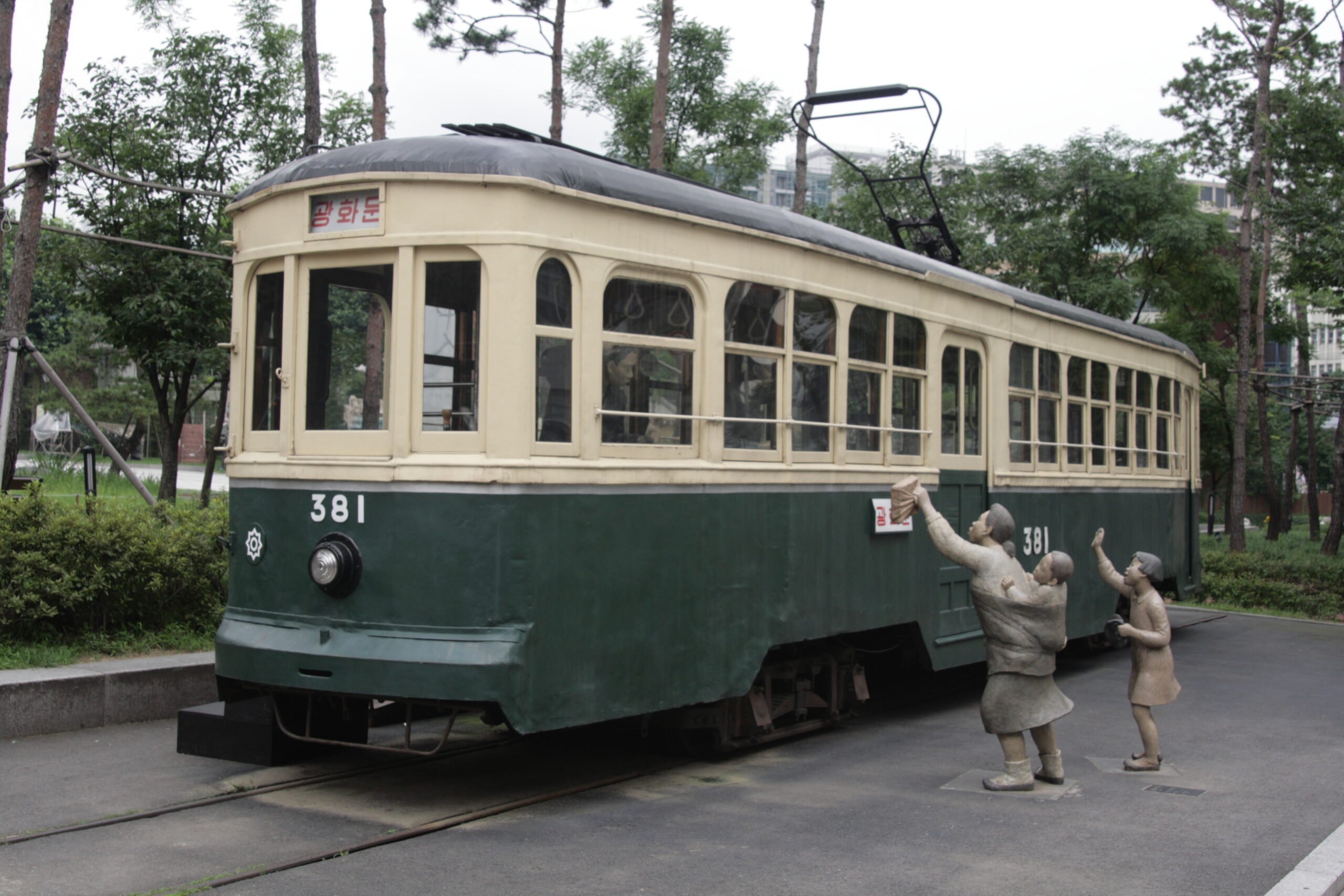 Image: One of Seoul’s historic trams displayed outside the Seoul History Museum.